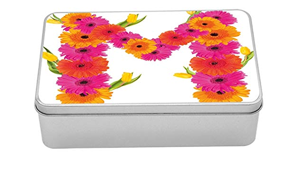 Amazon Com Ambesonne Letter M Tin Box Pink And Orange Gerbera Flowers And Tulips In Full Blossom Fresh Spring Portable Rectangle Metal Organizer Storage Box With Lid 7 2 X 4 7 X 2 2 Hot